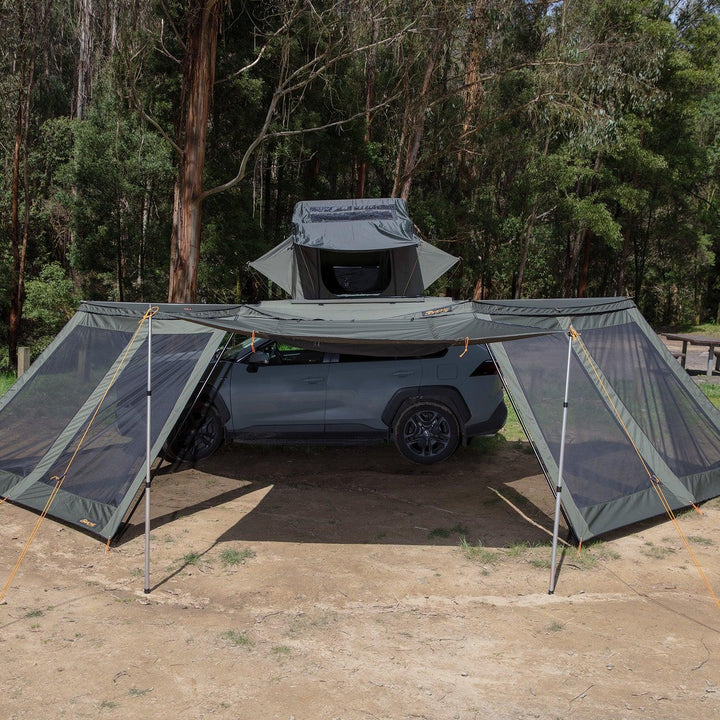 Get even more out of your Eclipse 180° Awning by kitting it out with the Eclipse 180 wall set. The added wall takes your total coverage from 8.2m2 to a massive 16.5m2, depending on your vehicle's height.