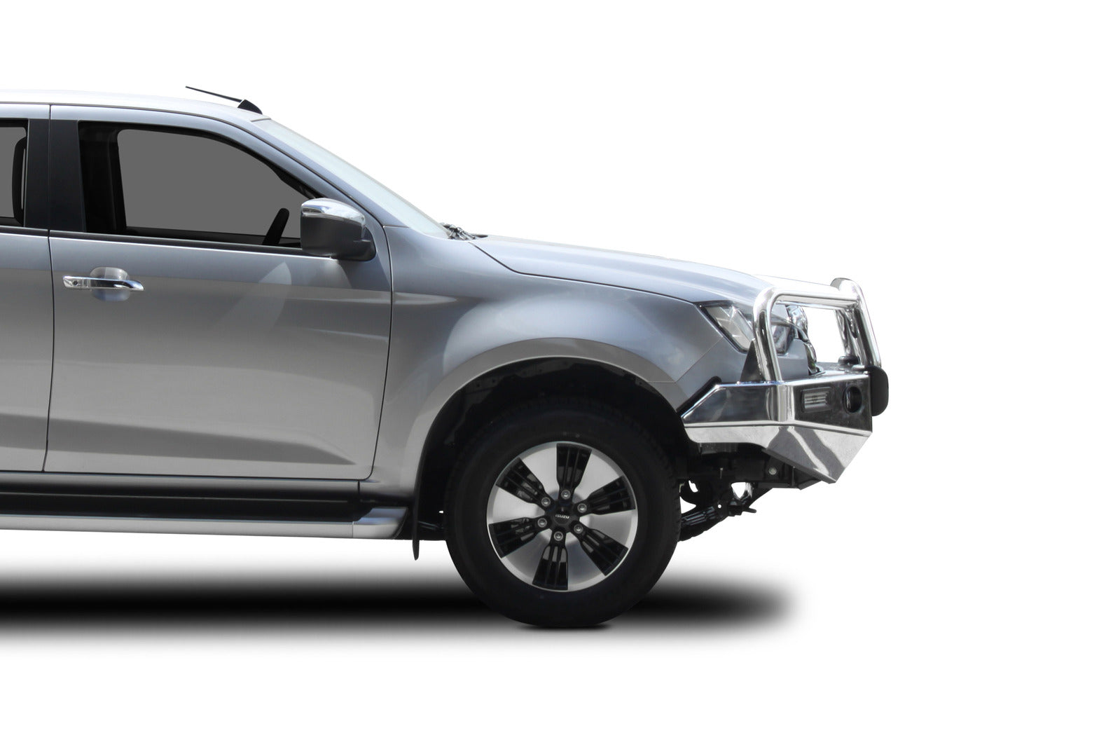 For the ultimate in frontal protection you can't go past the superior strength, quality and style of the ECB Alloy Bullbar for your new Isuzu D-MAX. The single piece channel is fully welded and manufactured from hi-tensile, structural grade alloy to provide maximum protection. Our Bullbar incorporates a full width, braced lower protection skirt and the specifically designed steel mounting system ensures a strong and sturdy fit. ECB LED light combinations, bumper lights, air directional cooling vents and an aerial bracket are all standard features.