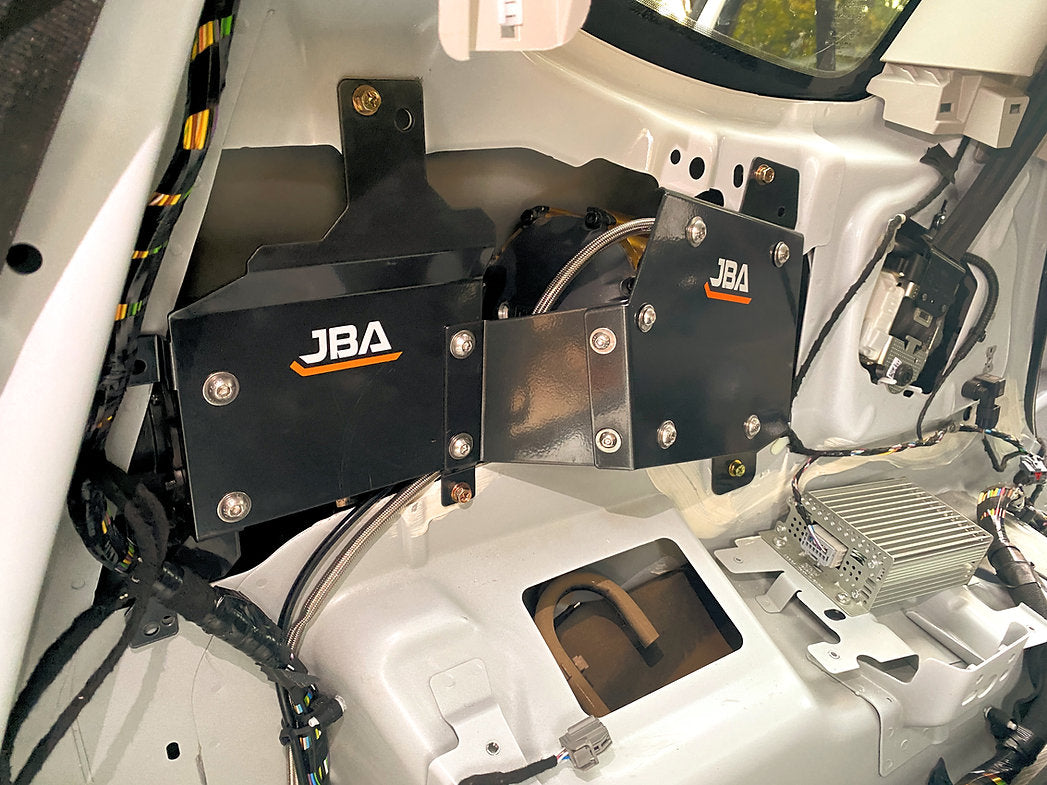 The JBA Everest 09/22+ bracket enables a concealed fit for the TJM heavy duty single compressor behind the passenger side rear quarter panel. JBA also offer the ability to fit the TJM 2.5L air tank with a seperate mounting bracket as an option.