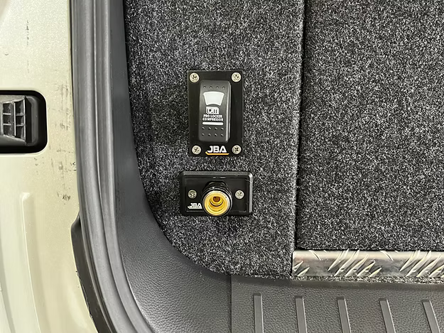 The JBA 300 series single/double compressor bracket enables a concealed fit for both the TJM heavy duty single and twin compressor as well as the TJM 5L air tank.