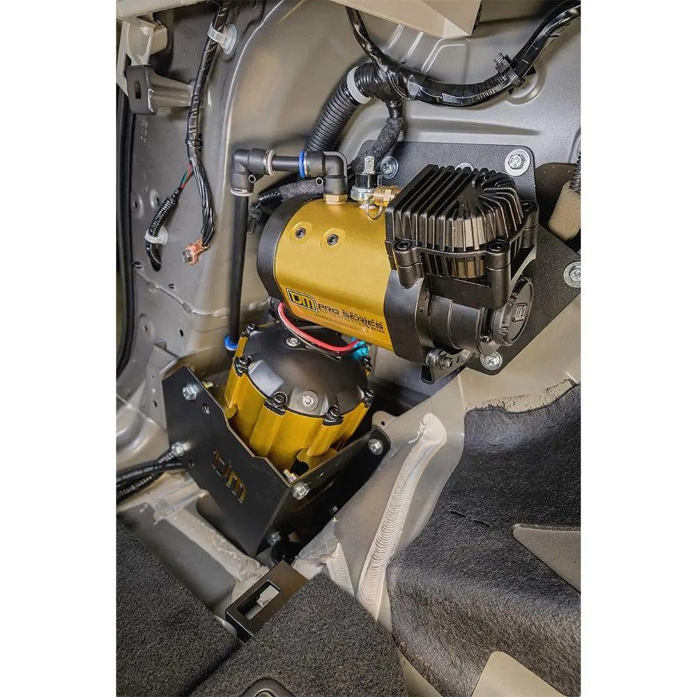 If you love loading up your 4x4 and exploring the world, you require an on-board air compressor. The second you encounter soft terrain drop your tyre pressure with your hidden TJM Compressor & air tank and air up ready to hit the black top. Unfortunately, many air compressors take up a lot of valuable space with mounting requirements that make their accessibility and positioning quite limited. That’s where the TJM Air Compressor Bracket comes in. Compatible with the TJM Pro Series Air Compressor and TJM Pro Series 2.5L Air Tank, the Air Compressor Bracket securely mounts these components using existing factory mounting points so it can be positioned in concealed areas. Featuring a robust steel construction and a durable finish, the TJM Air Compressor Bracket is built tough to withstand the constant punishment a compressor can deliver to its mounting points.