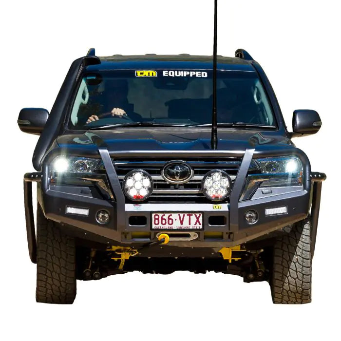 The genuine TJM Outback bull bar range offers exceptional frontal protection for your Landcruiser. Our engineers have spent countless hours perfecting the design of these bars to ensure our customers are equipped with one of the finest products in the market. Full wrap Cato straps and 63mm outer pipework provides added strength, damage deflection and headlight protection. This TJM Outback bull bar is 4x4 equipped with an integrated steel winch-mount, integrated rated recovery points, Optional LED fog lights, LED combination lights, and reinforced T-slot recovery jack points. This full bumper replacement Bull Bar is ready to work for you with dual aerial mounts and mounting points for installing large slim line driving lights. Combining classic styling with premium features, TJM's Outback bull bar range offers uncompromised frontal protection for your 4x4. Take the Lead with TJM.